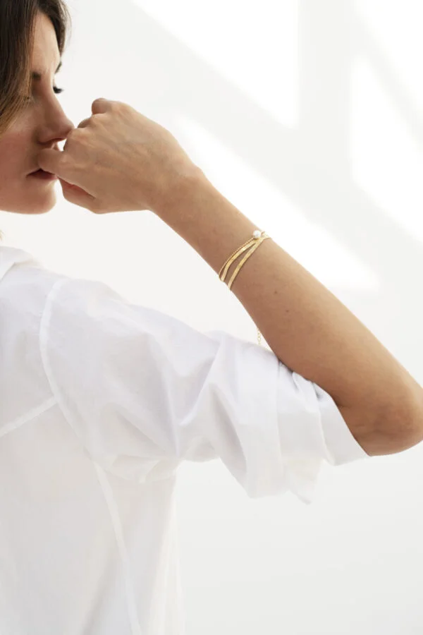Deze prachtige armband is geïnspireerd door de vintage mode die gemakkelijk kan worden gemengd en gecombineerd met andere stukken. Dit stuk is van echt goud, het heeft een 925 zilveren kern en is bedekt met een dikke laag 14k goud om langdurige kleur en glans te garanderen. De platte slangenketting, is het perfecte statement startpunt voor een gelaagde look.
