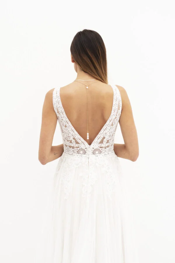 Een tijdloos rug sieraad met prachtige parels die de rug van je trouwjurk nog meer tot haar recht laat komen.