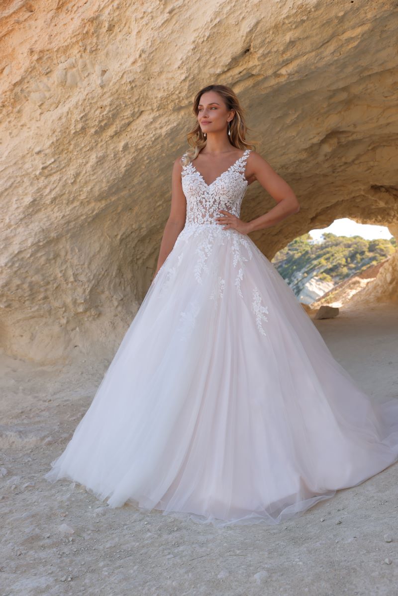 Wil jij de fantastische jurk Azuree - Aida passen voor jouw bruiloft? Bij de Bruidshoek verkopen wij een groot assortiment van het merk Azuree. Azuree - Aida is een trouwjurk met een Bijzonder rugaccent karakter en bestaat uit de stof Kant.