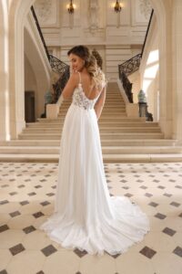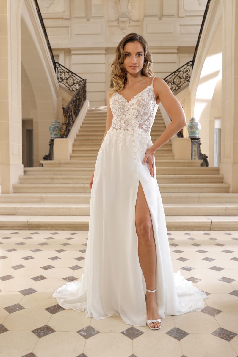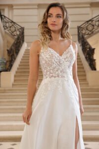 Wil jij de fantastische jurk Azuree - Aubree passen voor jouw bruiloft? Bij de Bruidshoek verkopen wij een groot assortiment van het merk Azuree. Azuree - Aubree is een trouwjurk met een Modern karakter en bestaat uit de stof Chiffon.