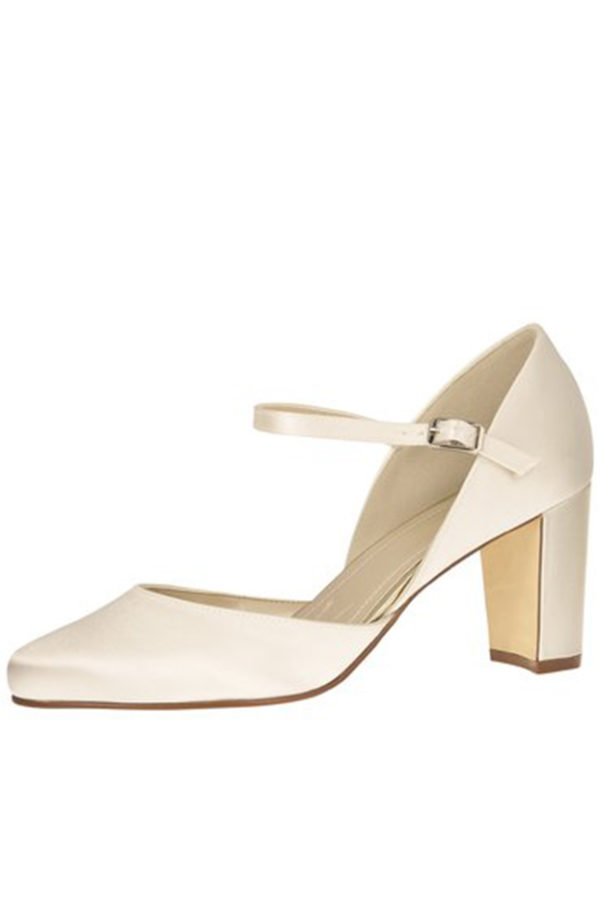 Satijnen pump met blokhak en bandje, hak hoogte 7 cm