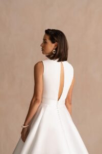 Wil jij de fantastische jurk Marylise - Chamonix passen voor jouw bruiloft? Bij de Bruidshoek verkopen wij een groot assortiment van het merk Marylise. Marylise - Chamonix is een trouwjurk met een Bijzonder rugaccent karakter en bestaat uit de stof Crepe.