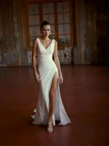 Wil jij de fantastische jurk Modeca - Didianne passen voor jouw bruiloft? Bij de Bruidshoek verkopen wij een groot assortiment van het merk Modeca. Modeca - Didianne is een trouwjurk met een Ingetogen karakter en bestaat uit de stof Crepe.
