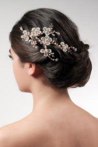Een prachtige uitgebreide haar accessoire van bloemen. Het haar accessoire is van Poirier.