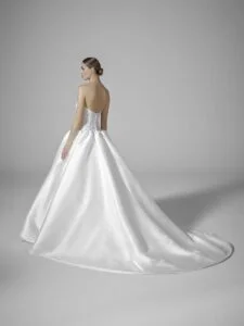 Wil jij de fantastische jurk Pronovias - Bourgeon passen voor jouw bruiloft? Bij de Bruidshoek verkopen wij een groot assortiment van het merk Pronovias. Pronovias - Bourgeon is een trouwjurk met een Klassiek karakter en bestaat uit de stof Mikado.