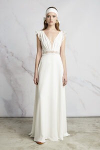 Rembo Styling heeft met de Lumiere/1 een fantastische jurk ontworpen. De mooie diepe V hals met een klein kap mouwtje met kant. In de taille hebben ze het kant rondom geplaatst waardoor je extra focus krijgt op het smalste stuk van je lichaam. De zijkanten zijn ook transparant wat een heel gaaf effect geeft en de jurk heel luchtig maakt. De Lumiere/1 is een waanzinnige jurk voor de bruid die op het strand trouwt of voor een ontspannen sfeer gaat.