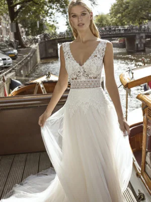 Iedere bruid is uniek en heeft haar eigen droombeeld van de perfecte trouwjurk. Wil je een romantische prinsessenjurk, een moderne minimalistische bruidsjurk of een klassieke A-lijn trouwjurk? Bij de Bruidshoek vind je een breed assortiment in diverse stijlen.
